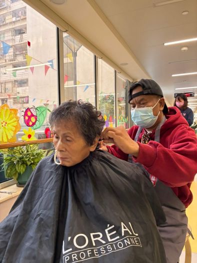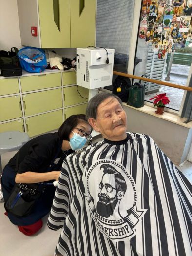 The Nursing Home invited senior volunteers from the Elderly Academy at the Yee Chun Centre of the Macau Federation of Neighbourhood Associations to provide haircuts for residents on 15 January.
