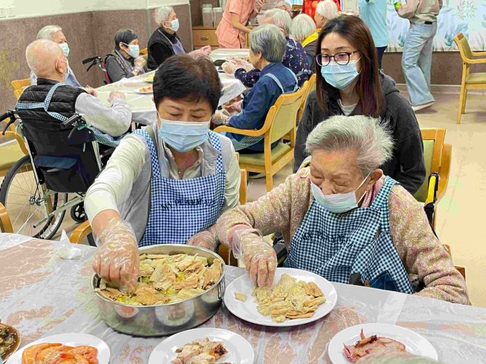 Ingredients were sourced by the care home, with two residents assisting at the Red Market. After staff, including chefs, meticulously prepared ten auspicious ingredients, social workers explained the dish's origins and the symbolic significance of each component, fostering a cheerful atmosphere. As the pot dish assembly commenced, residents, family members and carers worked together in unison, layering ingredients into the pot from the base, middle and top tiers. Residents displayed palpable excitement and anticipation; upon enquiry, it emerged that the vast majority had never personally prepared a pot dish before. This “first-time” experience lent the activity a special significance.