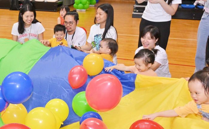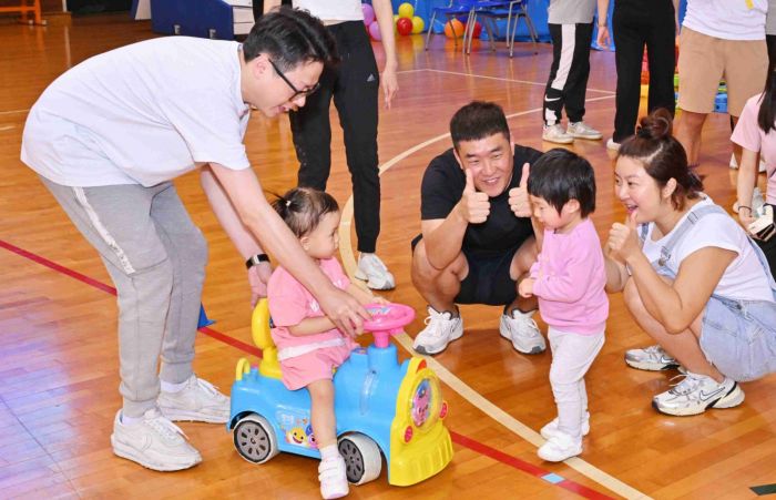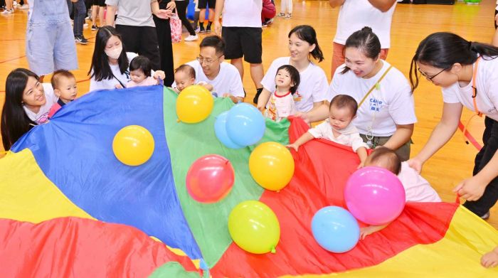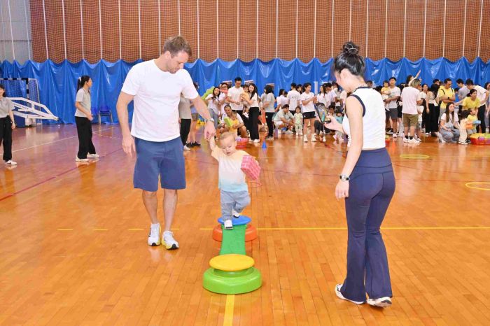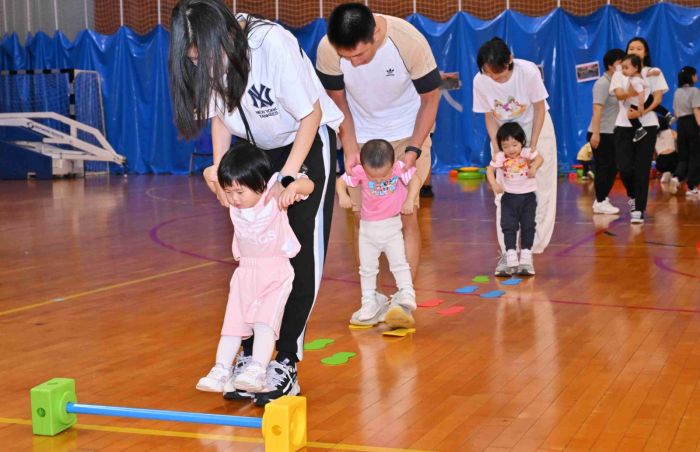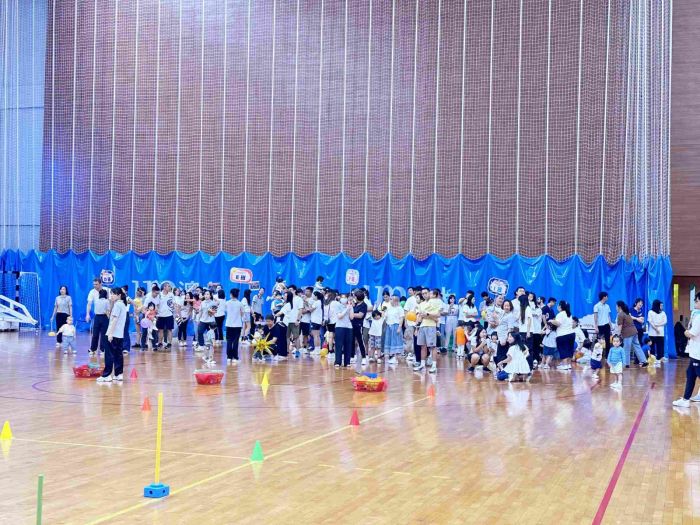 今年舉辦了「親子競技日」活動,幼兒穿著班服,在助教的帶領下與家長一同進入會場,然後由老師帶領他們一起做親子體操,場面非常熱鬧﹔家長可以藉此活動,與其他家長一起進行遊戲,增進彼此之間的交流。員工與家長可以一起拍照留念,共同渡過了一個愉快的親子競技日。