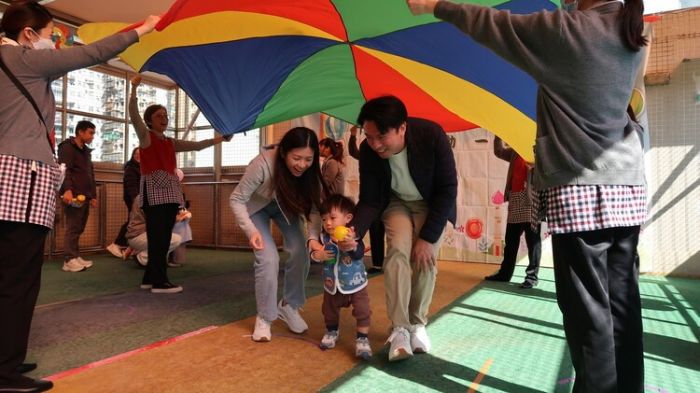 為配合小班幼兒的大小肌肉訓練,托兒所的幼兒導師們舉辦“親子互動工作坊”通過親子互動為幼兒帶來不同的五感刺激,激發嬰幼兒發展,讓親子間拉近距離。