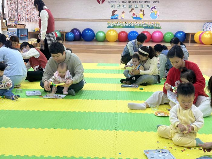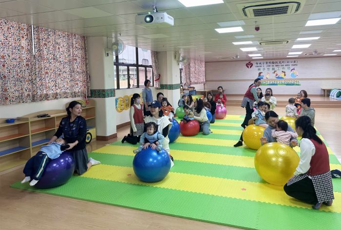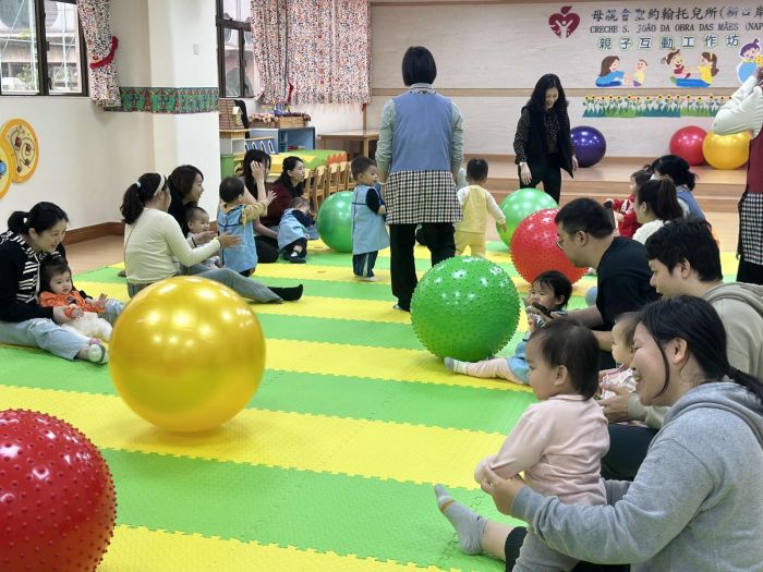 母親會聖約翰托兒所(新口岸)舉行「親子互動工作坊」,在老師帶領下,進行親子早操、親子瑜伽操、親子瑜伽球、親子障礙賽,幼兒與家長亦共同製作紙盤陀螺並拍照留念。藉此活動,推動幼兒與家長之間的親子關係,鼓勵加強親子之間的互動與溝通。
