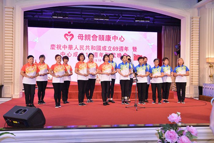 母親會頤康中心為慶祝祖國成立六十九周年及中心成立十九周年,舉行聯歡晚會, 筵開近五十五席,場面熱鬧。中心走過十九年頭,將秉持熱誠態度,與服務使用者一起充滿力地成長,堅守著耆康服務的崗位,未來將繼續精益求精,提供更優質的服務。